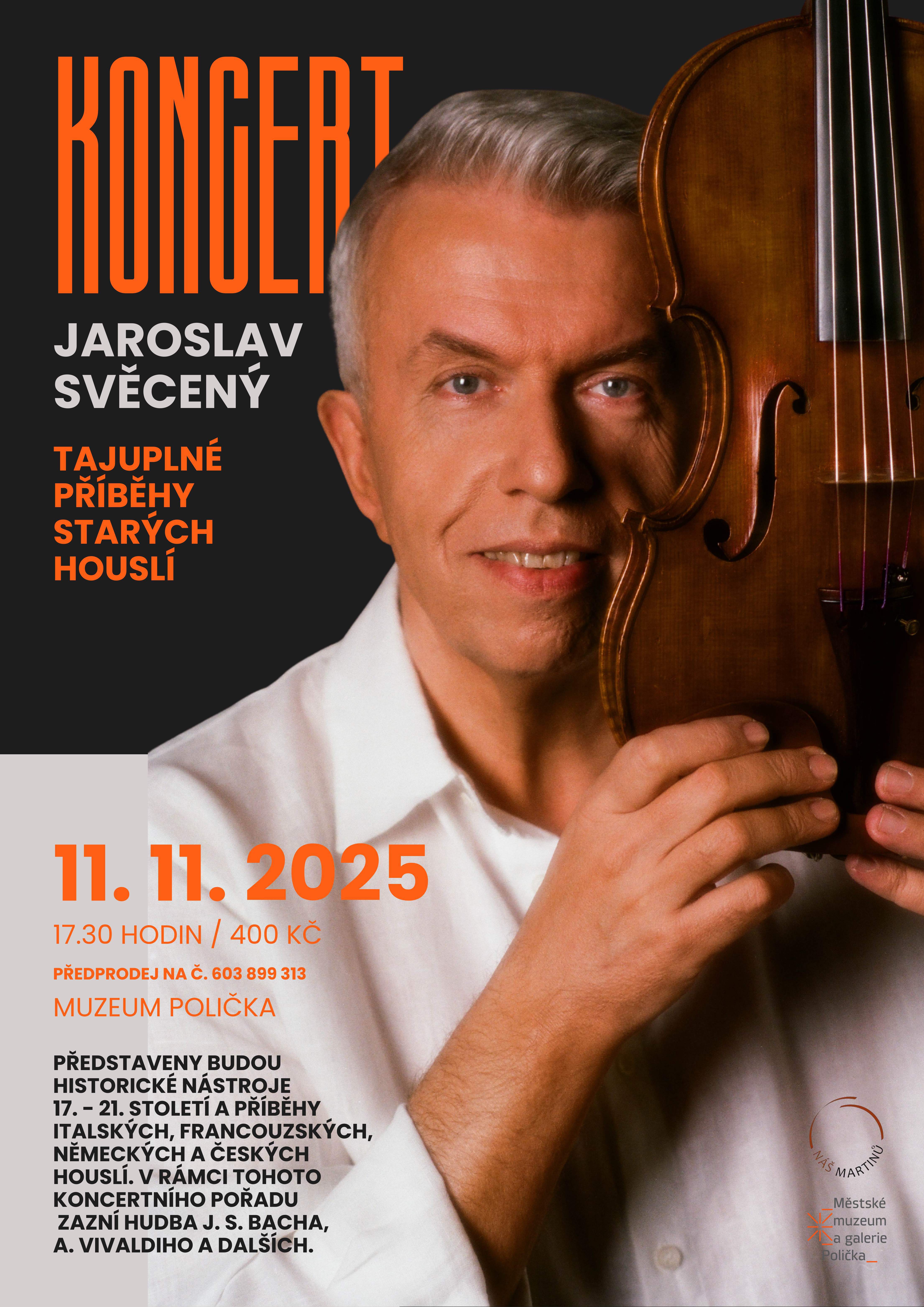 Historické nástroje 17. - 21. století a příběhy italských, francouzských, německých a českých houslí představí houslista a zároveň soudní znalec s mezinárodní působností v oboru smyčcové nástroje Jaroslav Svěcený. V rámci tohoto koncertního pořadu zazní hudba J. S. Bacha, A. Vivaldiho a dalších.